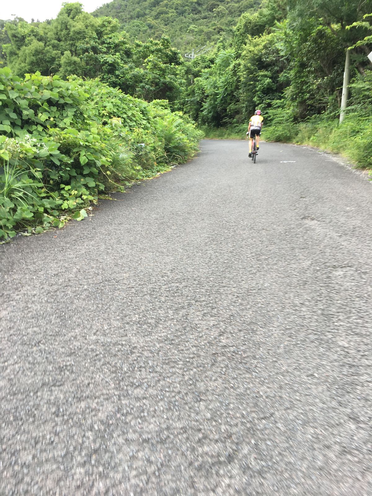 登り口まで店長に前を牽いてもらってさあ登坂。